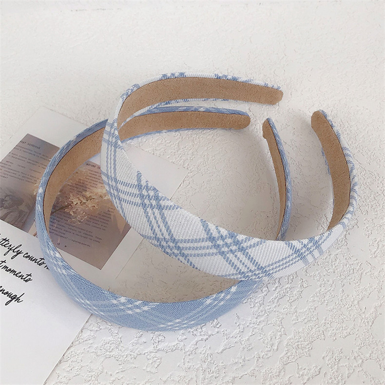 Color: white plaid headband, blue plaid large intestine ring, blue headband, white headband